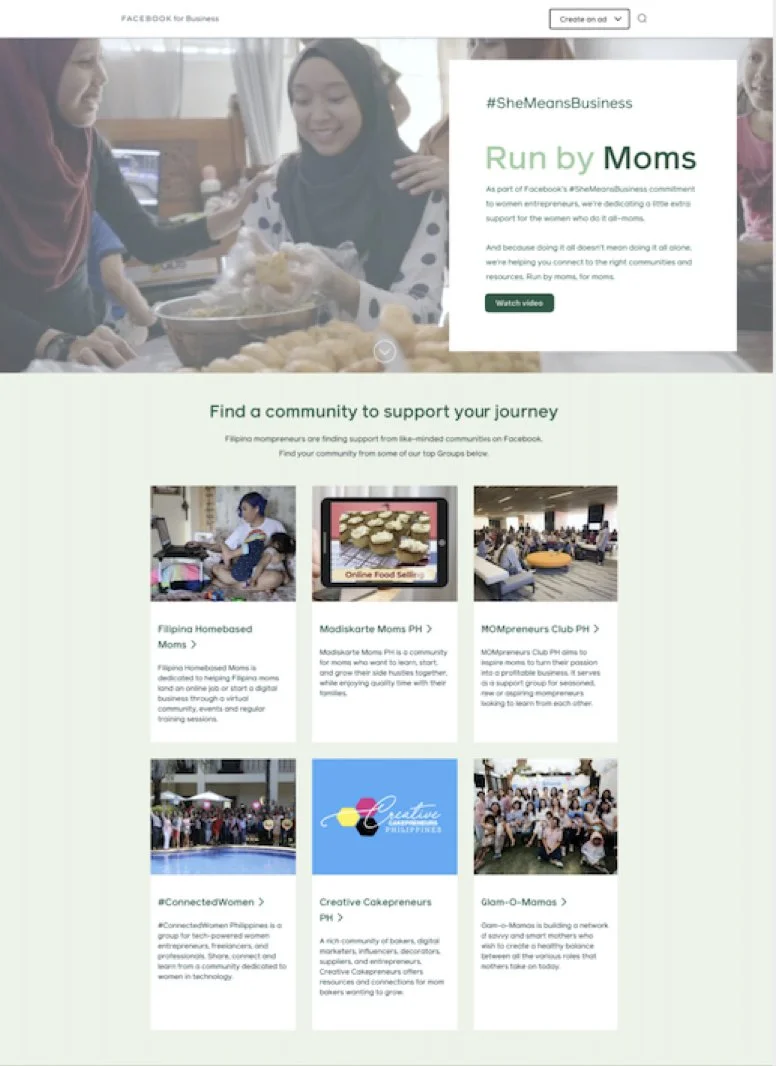 At the height of COVID 19, Facebook held an internal hackathon calling for ideas to support SMBs. As someone whoβs passionate about empowering women in business, I knew this was my chance to do more. I formed a core team of creatives and marketers to lead a proactive initiative that focused on female entrepreneurs who carried the largest domestic burdensβmoms.